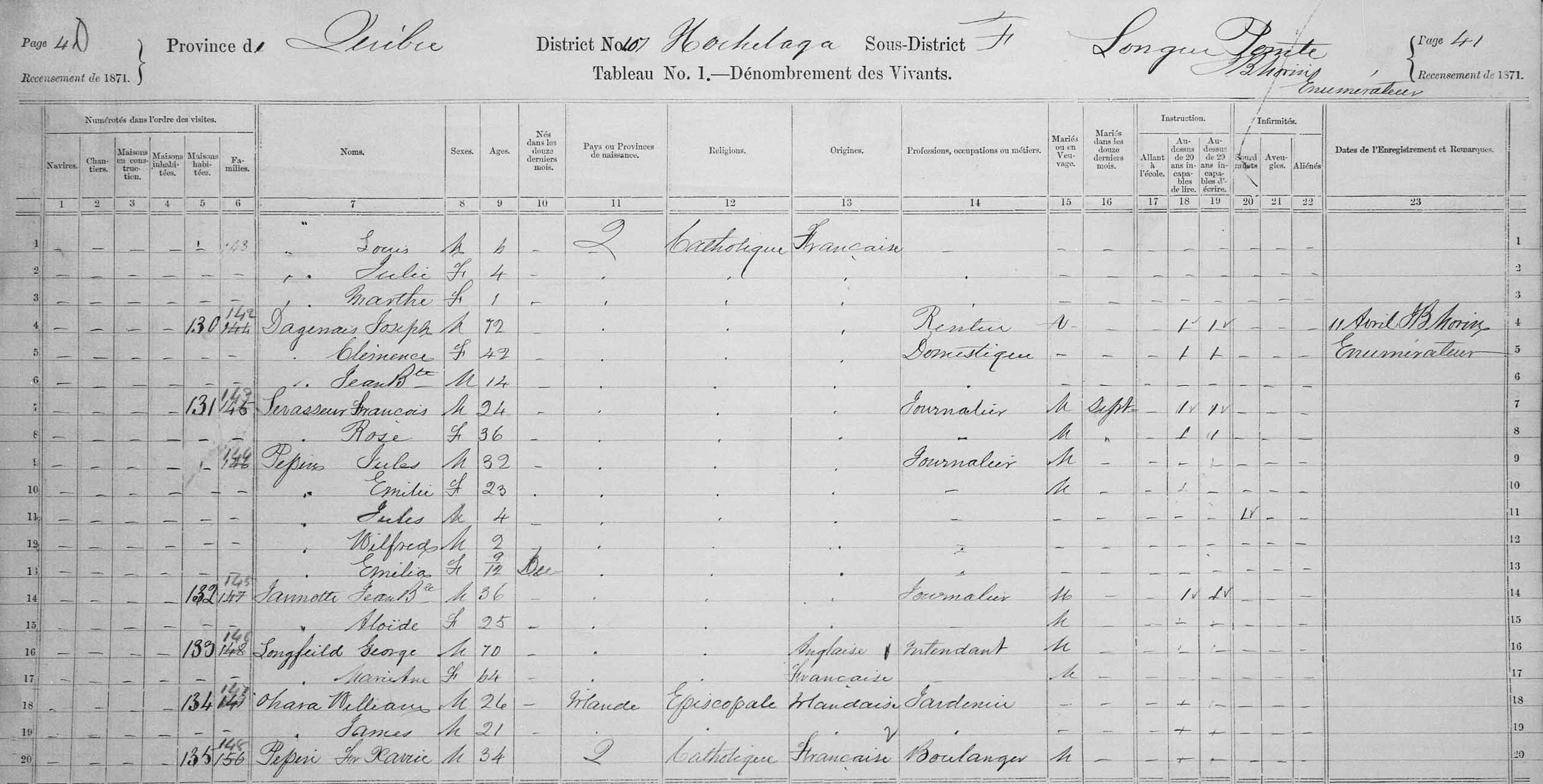 I decided to start with Jules, my grandfather’s grandfather, because if I couldn’t prove he was born in Canada, the rest of the application was pointless. The 1871 Canadian Census record, linked to Jules on FS, indicated he was 4 years old at the time. Aha, so now we had a birth year – Jules was likely born in 1866/67! The census record also showed the family was living in the district of Hochelaga, neighborhood of Longue-Pointe. A Google map search revealed this area is essentially in the city of Montréal!